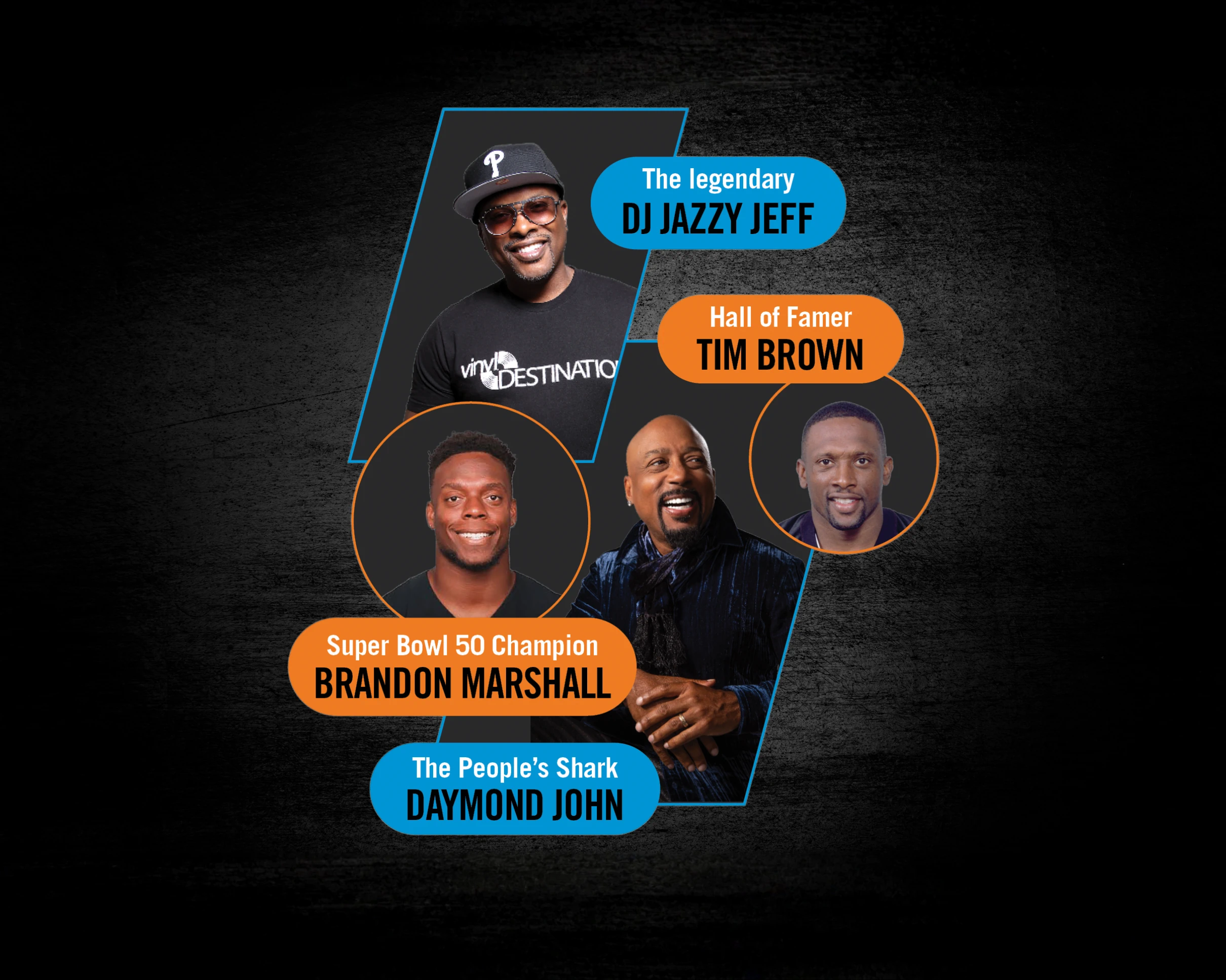 Fuel the night with elevated game day food, cocktails, and nonstop energy as DJ Jazzy Jeff spins the hits. From celebrity meet and greets to once in a lifetime stadium moments, this is more than a party. It is a history making night you will never forget.