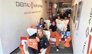 (Front to back) Alexi Venneri, Digital Air Strike’s co-founder and CEO; Erica Sietsma, DAS’ COO; Diana Gibson, DAS’ director of client success; and Max Hamilton, DAS’ vice president of technology, show off their DAS style in the company’s Scottsdale lobby.DAS is part of a $5.2 trillion global information technology ecosystem, according to the Computing Technology Industry Association.“It comes from being scrappy and resilient. When you’ve been pinching pennies for a while, that’s how you run your business,” she said of her company’s success.For the past 10 years, DAS has developed technology that allows clients to harness the power of social media and other online avenues to clients’ benefit. Services also span features like video, artificial intelligence, automation technology, mobile apps, social media and reputation management and more.The client base includes seven of the largest automotive manufacturers with the majority of clients in some facet of the auto industry. Venneri said that 39% of car purchases and service transactions in the country are affected by at least one of DAS’ tools.Clients are in industries with a customer base that tends to do a lot of prepurchase online research and make higher ticket purchases like housing, online college programs and cars.Not every business was prepared for the impact of COVID-19. But considering its far from ho-hum beginnings, DAS was fairly primed to take it on.Pandemic provides a nudgeWhen the pandemic hit and made doing business in-person risky and nearly impossible, DAS’s clients found themselves starting at square one.Fortunately, Venneri and her evolving business model was several steps ahead. She already had the technology and plans ready to go. Conditions just provided a nudge.“It was moving this way, but the pandemic expedited this,” she said. “We are always looking at ways to elevate the interaction that can be cumbersome for the business or consumer.”This technology has helped many auto dealers approach doing business in ways they previously had not, like selling vehicles online, contactless service, e-contracts and even at-home test drives where vehicles are dropped off and picked up with no physical contact or, if desired, interaction. Consumers also can quickly see what vehicles they qualify for right off the bat.The result is a seamless consumer to business relationship that takes less time and is more transparent, Venneri said.Other programs like DAS’ Response Path Power Text, a bulk texting technology that gives clients an easy and fast way to reach consumers at home, came together quickly in-house in response to the need for distancing.“The reality now is that no one wants to meet in person. Businesses have to use this technology. I think it’s changing behaviors, too. Customers will expect they can do more at home,” she said.For seven years, Jordan Barrett, the digital marketing director of Liberty Automotive Group, has used DAS for assistance with customer survey response, reputation management, social media presence and managing the AI chat box that pops up on the websites.This would be tedious, confusing and time consuming on the dealer end. Not being tasked with those duties frees up personnel to do what they do best. This, Barrett said, has been crucial, especially in the past few months.Also, Barrett is better able to understand the benefits of social media ads and various leads that result in sales. These are among the ways DAS has enabled him to help improve business for his employers, past and present.Peoria-based Liberty Automotive owns Liberty Buick, Liberty GMC and Liberty CarStar.“I feel like they are an extension of our team. Digital Air Strike comes in, watches our business process and lets me know what they can help us with, which is why they are impactful and they work,” Barrett said.Customers, businesses start to connect in new waysIn the fall of 2009, Venneri was running an ad agency that dealt primarily with car dealerships. The heat of the recession took its toll and for the first time in her adult life, Venneri didn’t have a job.She kept her date to hit an industry trade show and connected with two other entrepreneurs, who would be her fellow co-founders and investors.Although it seemed counterintuitive at the time, Venneri recognized that social networks were just starting to take off. She envisioned launching an agency that delved into new ways clients and customers could connect.She began with monitoring Foursquare and Twitter check-ins at her clients’locations and used that to spark more responsive interaction with potential customers.Over the years, the technology and business model evolved and progressed.When the pandemic hit, DAS reached out to clients, many of whom were panicking. They gave clients new technology packages at no cost and other services to keep them going under the strange new circumstances. This, Venneri said, has created a stronger than ever rapport.“It lets them know, mentally, that we are in this together,” she said.But that camaraderie extends beyond work relationships. Contributing to the community is also part of the algorithm.Supporting projects that benefit animal shelters, at-risk youth, the homeless, single mothers pursuing a college degree and social injustice are part of the company routine and culture. It recently partnered with GoDaddy and the #OpenWeStand campaign to offer free tech tools to businesses.“Giving back to the community is a luxury we have because we can afford it. It’s so great that when we see a need, we can take action,” she said. “I feel like we are making a difference.”
