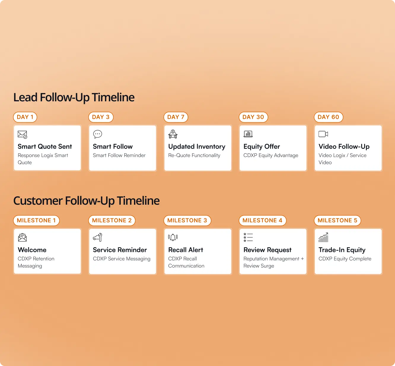 Smart Follow keeps aged and unsold leads engaged for up to 180 days. Automated emails and texts send updated quotes, new vehicles, and fresh offers while you focus on active buyers.